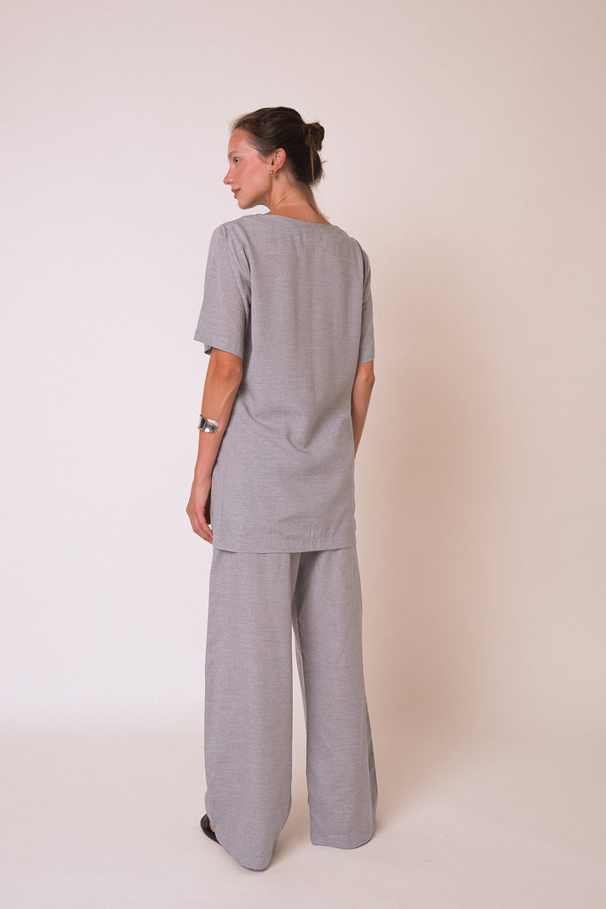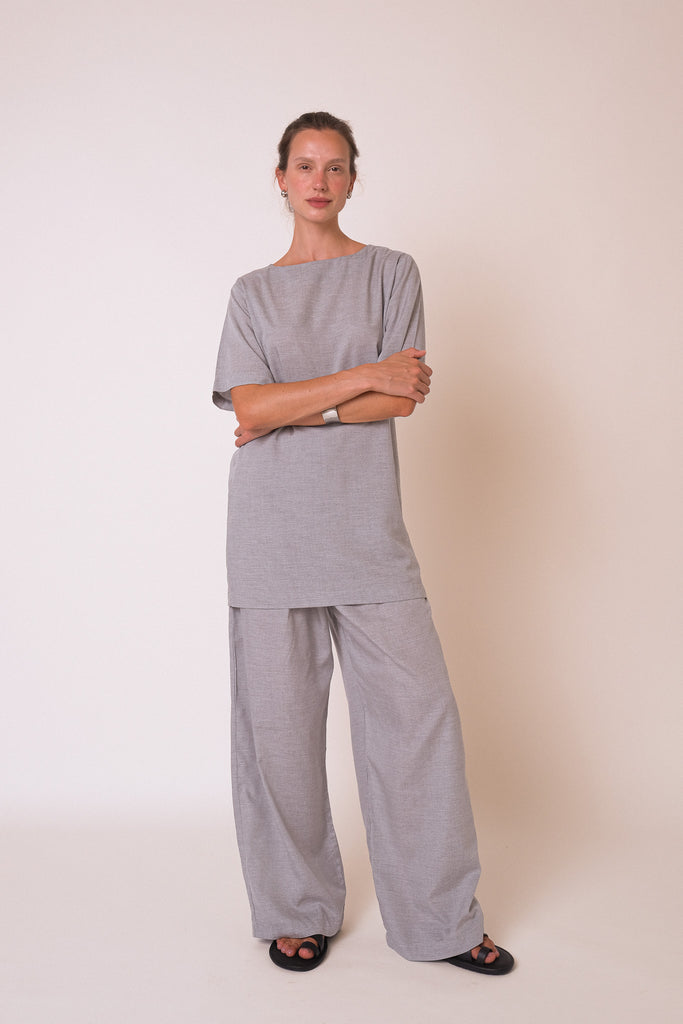 Nossa blusa duo é versátil e pode ser usada também como vestido. Possui mangas curtas e modelagem alongada. Seu tecido é leve, e super confortável.