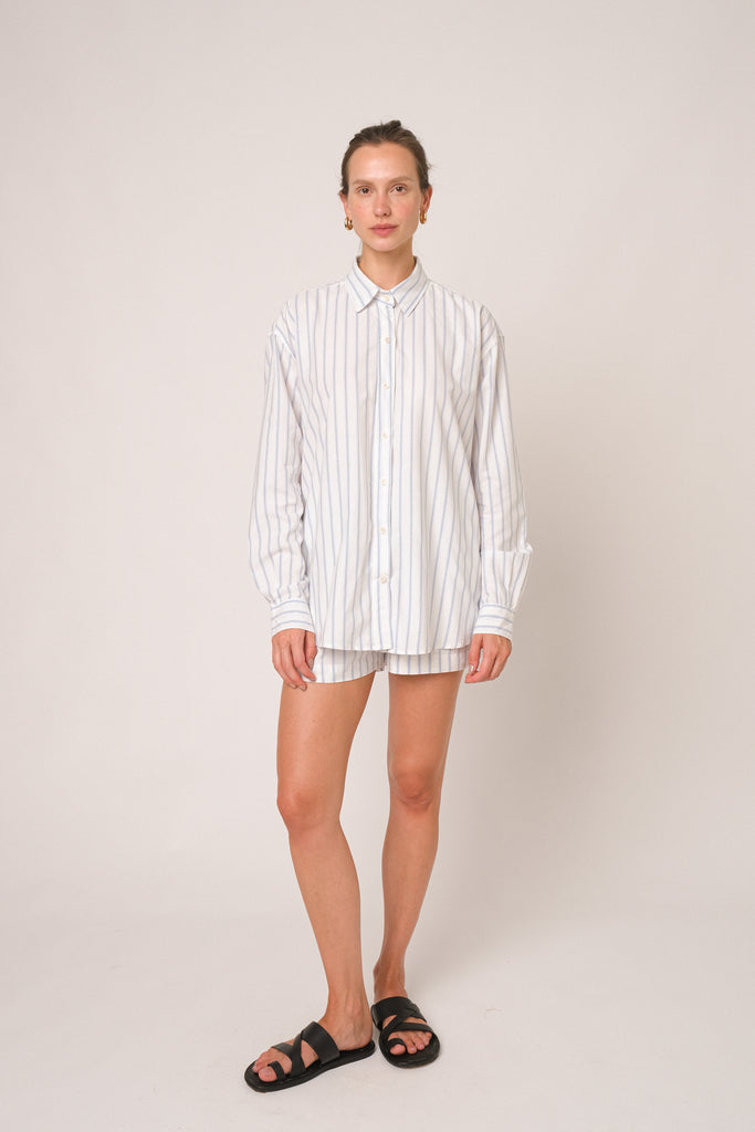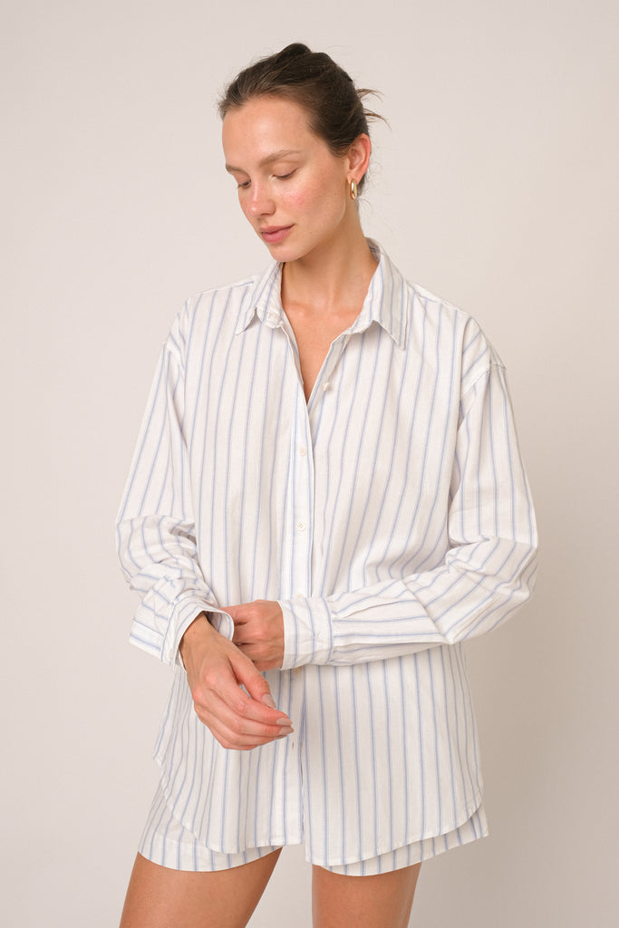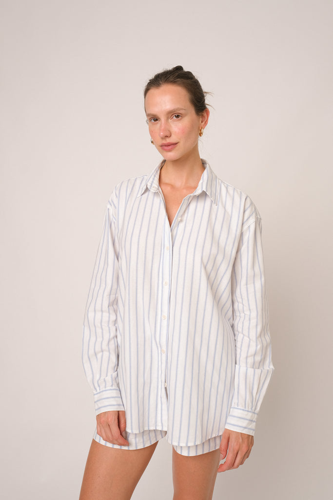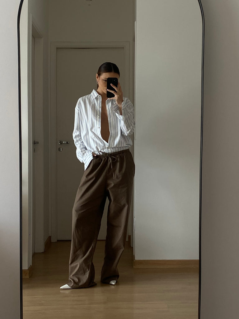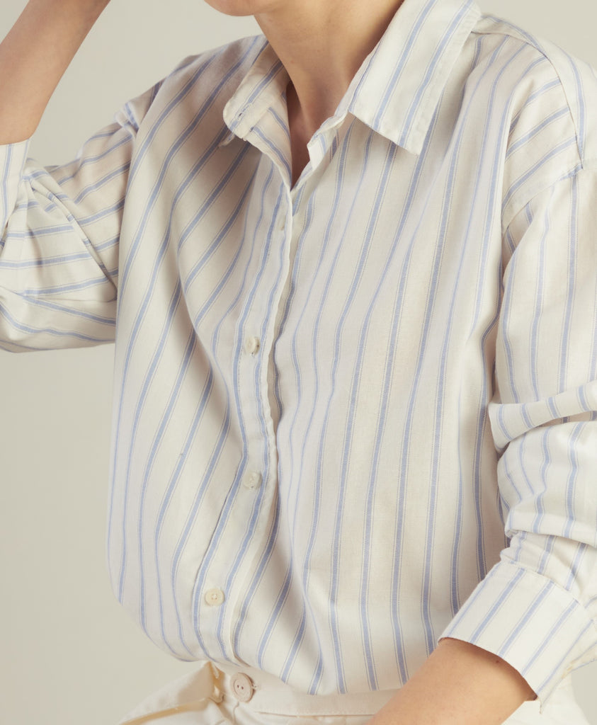 Camisa produzida com tecido leve, em algodão brasileiro e botões de corozo. Possui a mesma modelagem de nossa Camisa Natália, sem os bolsos frontais. Versátil e atemporal, como sempre.