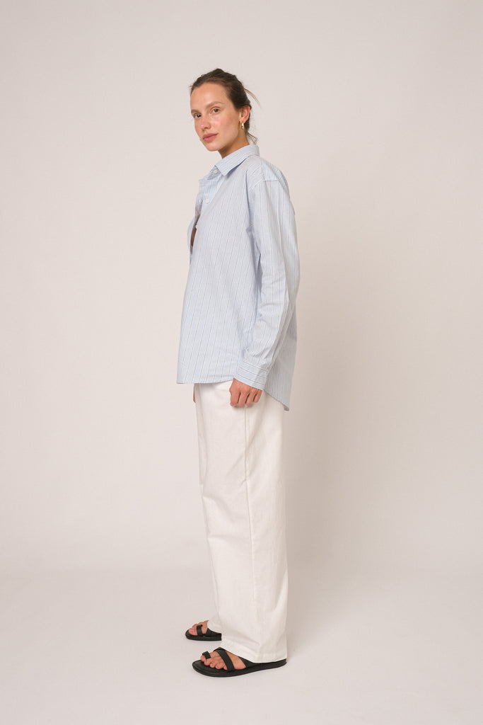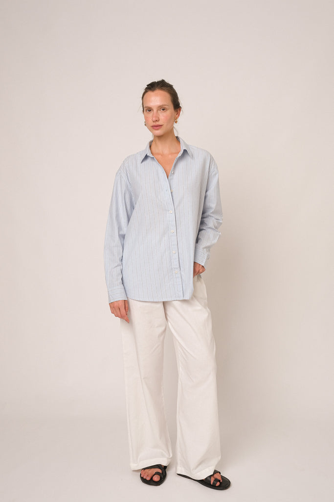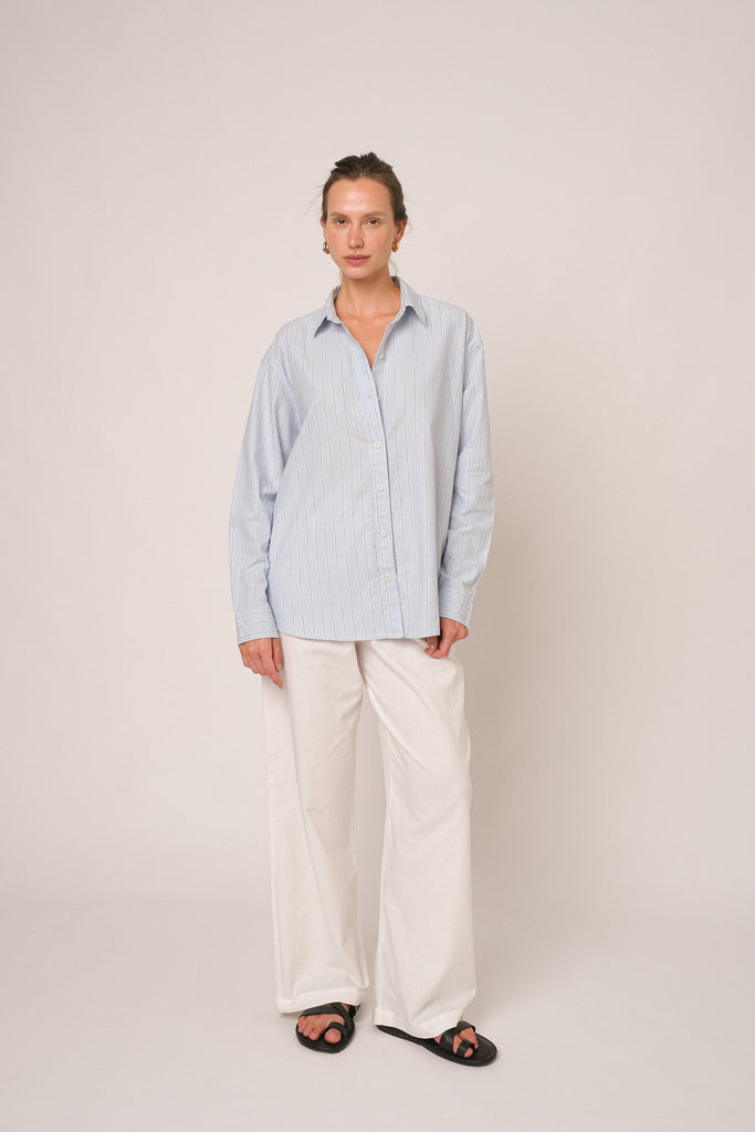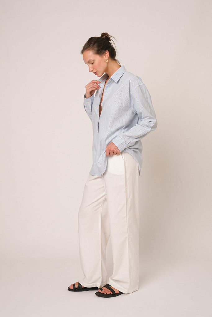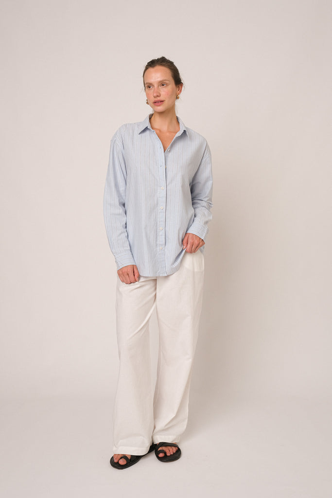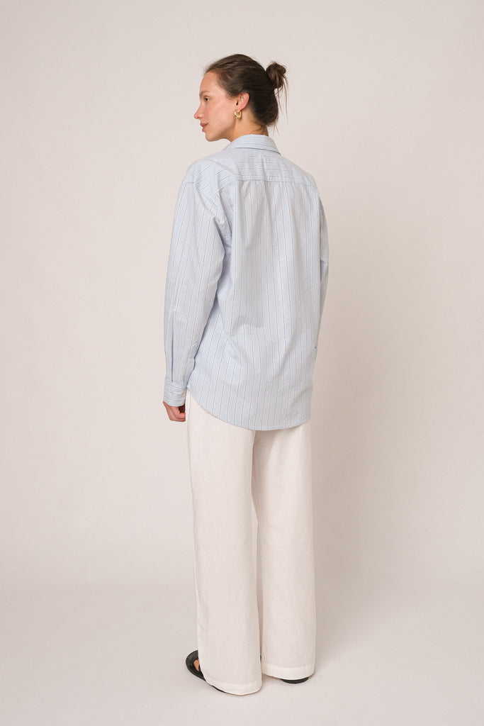 Camisa produzida com tecido leve, em algodão brasileiro e botões de corozo. Possui a mesma modelagem de nossa Camisa Natália, sem os bolsos frontais. Versátil e atemporal, como sempre.